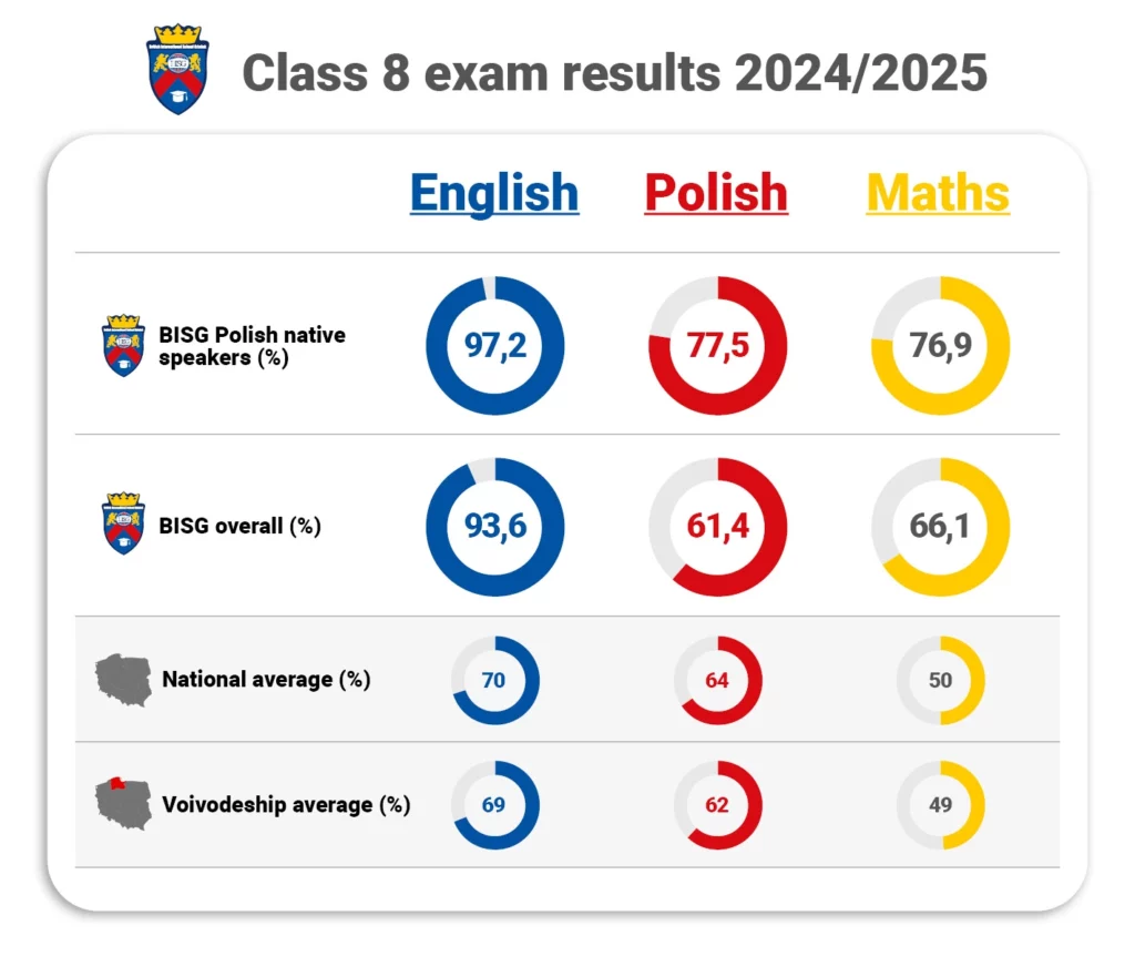 When you look at the results, please bear in mind that 60% of our students are international and are not fluent in Polish, with some of them only learning Polish for two years and some joining our school with limited English as well.